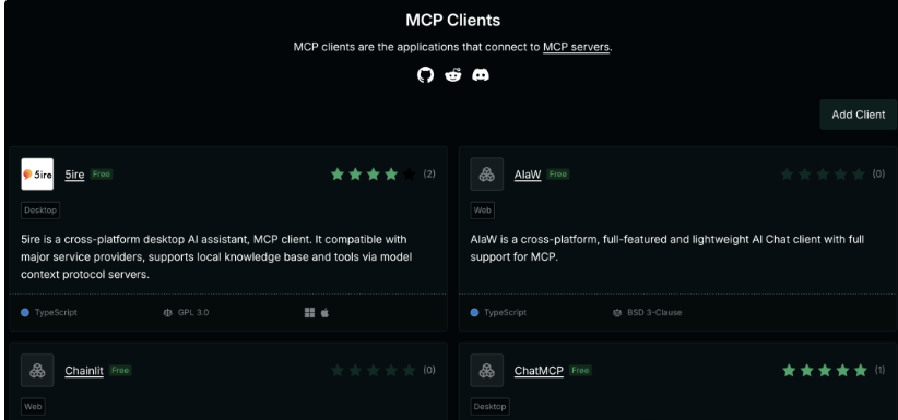 比如在名鼎鼎 的 Claude Desktop、Cursor、Cline 等都在其收录中。