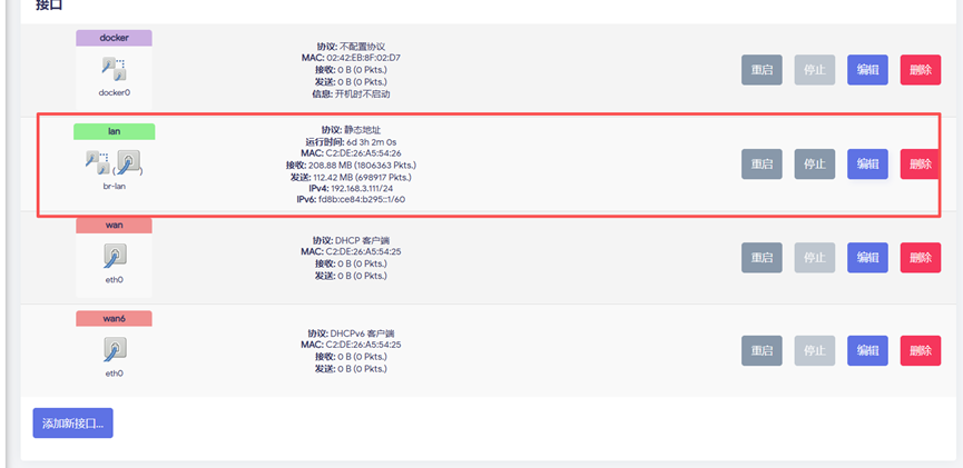 浏览器输入192.168.1.1进入管理后台 - 接口优化(旁路由模式)<BASH>网络 → 接口 → 删除WAN口 → 物理设置中桥接LAN网卡